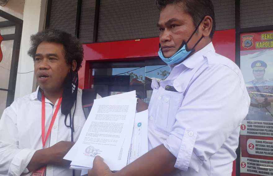 Membawa sebundel berkas laporan, Ketua DPD Pospera Kalsel, Racmad Mulyadi bersama Komisaris PT Bukit Energi Servis Terpadu (BEST), Daniel P Sitompul bersama belasan anggotanya melaporkan Arya Sinulingga ke Ditreskrimsus Polda Kalsel Komplek Bina Brata Jalan A Yani Km 3,5 Banjarmasin, Senin (16/11/2020)