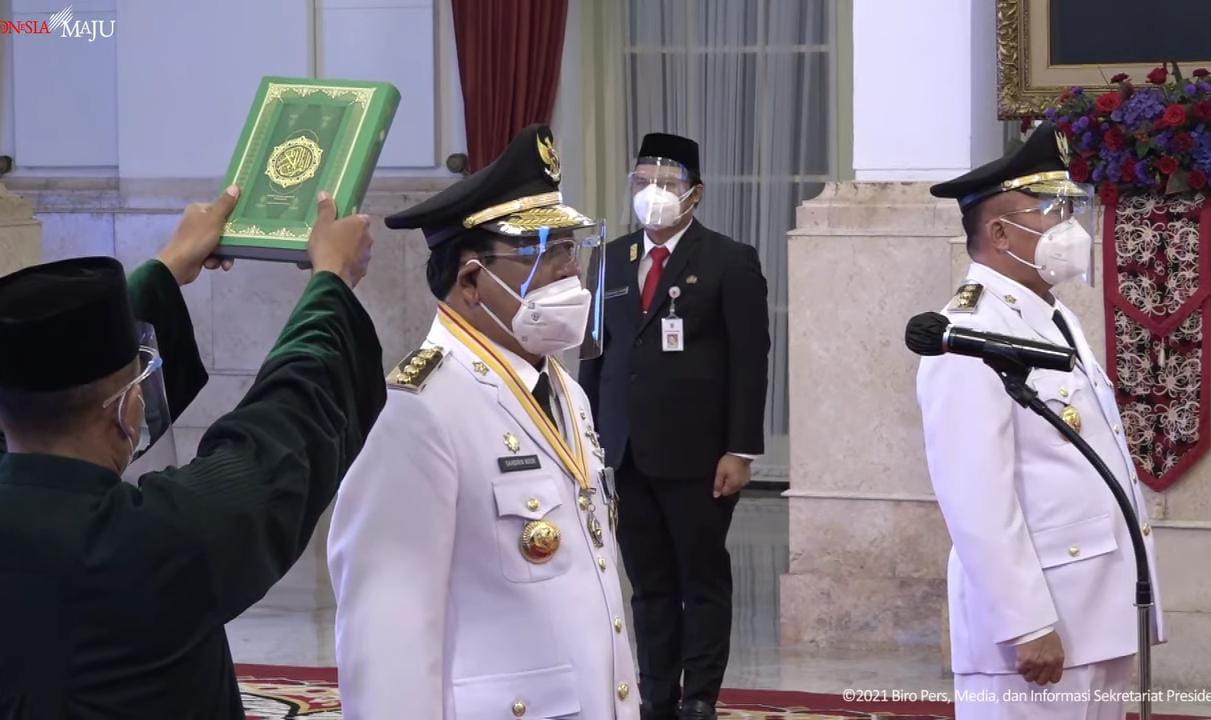 Jakarta, BARITO – Presiden Joko Widodo resmi melantik Gubernur dan Wakil Gubernur Kalimantan Selatan periode 2021-2024, H Sahbirin Noor-H Muhidin di Istana Negara Jakarta Rabu (25/8/2021) sekitar pukul 13.30 WIB.