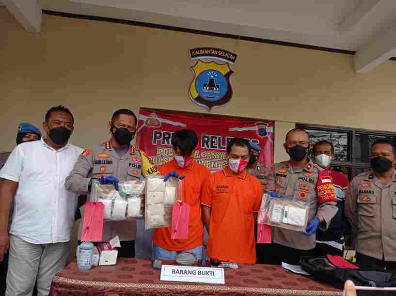 Banjarmasin, BARITO – Dua pengedar Sabu-sabu berinisial AY dan TH , dengan barang bukti 7 Ons berhasil disita dibekuk polisi, Sabtu (1/1/2022) pagi sekitar pukul 21.30 Wita. Narkoba itu ditemukan di dua tempat berbeda, pertama ditemukan di halaman rumah kosong Jalan Gatot Subroto atau Komplek Bawang Putih Kelurahan Kebun Bunga Banjarmasin Timur.
