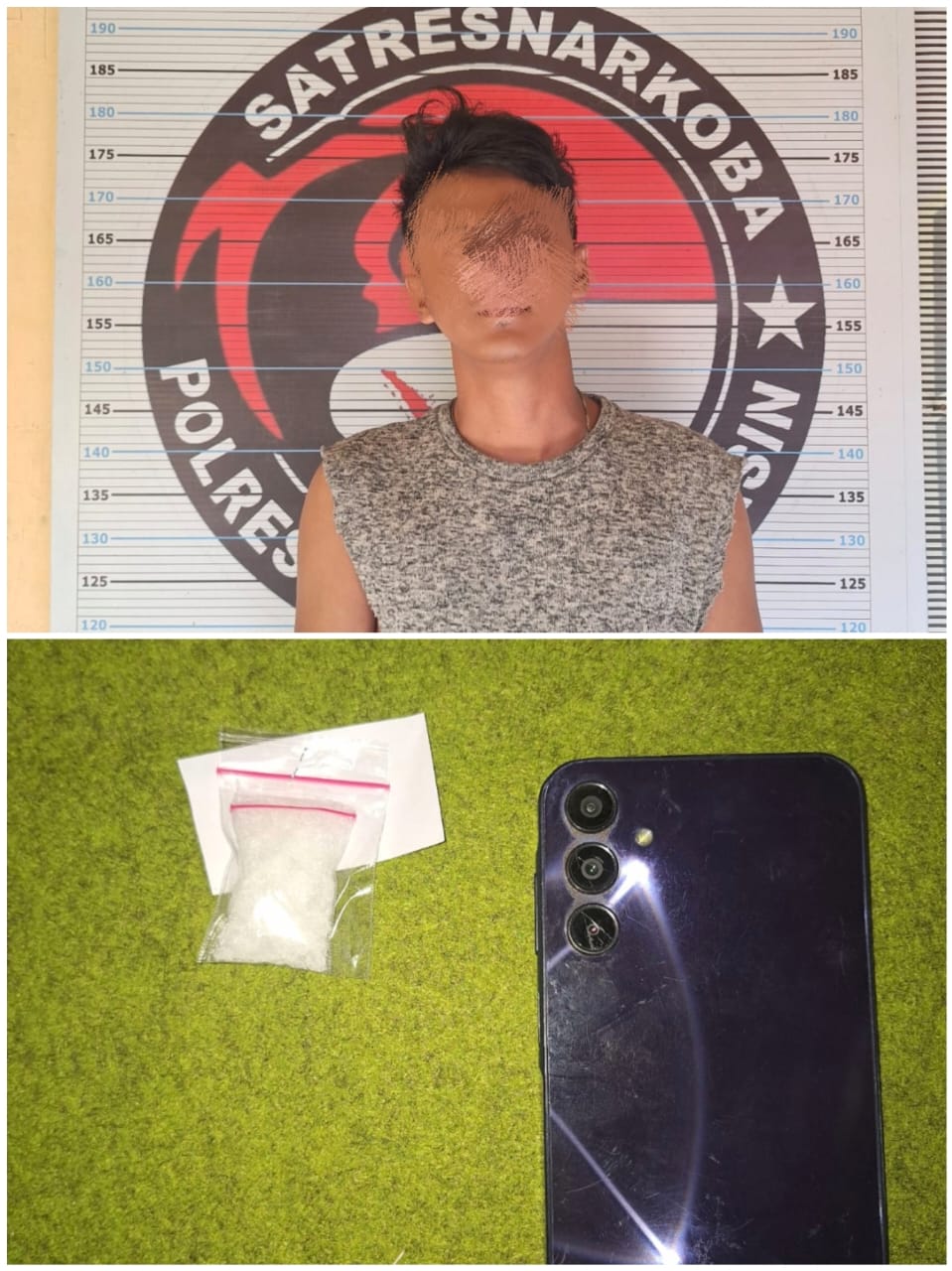 Dari tangan pelaku, polisi menyita satu paket sabu terbungkus plastik klip, sebuah ponsel Samsung A15 warna abu-abu, serta satu unit sepeda motor Honda Vario bernomor polisi DA 6064 CQ yang digunakan pelaku.