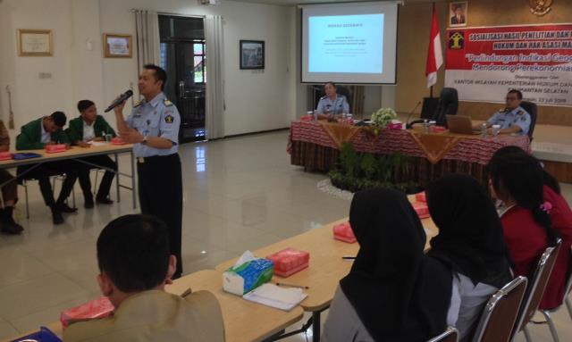 Sementara itu narasumber sebanyak dua orang dari Kantor Wilayah dan dari Badan Penelitian dan Pengembangan Hukum dan HAM R.I, Tripsapto WA Nugroho. Narasumber menyampaikan materi tentang Perlindungan Indikasi Geografis dalam Mendorong Perekonomian Daerah .