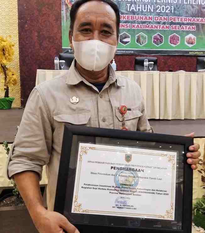 Ir Suharyo, Kepala Dinas Peternakan dan Kesehatan Hewan (Disnakkeswan) Kabupaten Tanah Laut Selasa, (23/3/2021) menyampaikan, Peghargaan Terbaik I dalam Kegiatan SIKOMANDAN ini, didasari Target Kinerja Kabupaten Tanah Laut yang lebih dari 50 persen dari target SIKOMANDAN Provinsi Kalsel, keaktifan petugas yang lebih dari 95 persen dalam melaporkan kegiatan yang dilaksanakan melalui aplikasi Sistem Informasi Kesehatan Hewan Nasional (iSIKHNAS), persentase nilai kebuntingan hasil inseminasi buatan yang lebih tinggi dari Kabupaten lainnya dan target akseptor mencapai 100 persen.