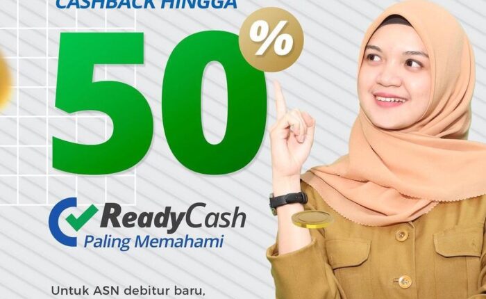 Terkini Bank Kalsel memberikan promo cashback ReadyCash hingga 50 persen untuk ASN debitur baru, take over dan jangka waktu kredit sisa 1 tahun.