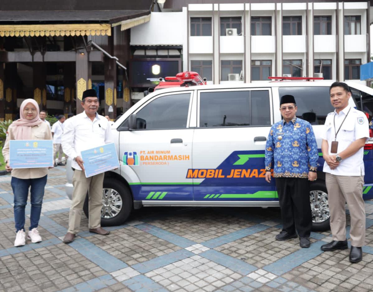 Banjarmasin, BARITOPOST.CO.ID – Kaki Kota Banjarmasin dan Masjid Sultan Suriansyah menerima bantuan Dua unit mobil Ambulan dan mobil jenazah dari PT Air Minum Bandarmasih. Dua mobil itu diserahkan langsung oleh Wali Kota Banjarmasin, Ibnu Sina pasca upacara Hari Kopri di Balai Kota Banjarmasin, Rabu (17/1/2024).