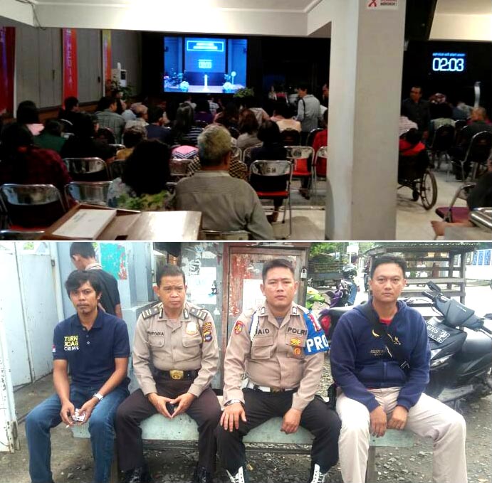 Banjarmasin, BARITO – Sebanyak 20 anggota polisi anggota Polresta Banjarmasin dan Polsekta Selatan melakukan pengamanan ( PAM) kegiatan Misa atau kebaktian Umat Kristiani di Gereja Bethel Indonesia, Jalan KS Tubun Banjarmasin, Selasa (1/1) pagi. Sejak pagi hingga menjelang siang. misa yang dipimpin Pendeta Kristianus Fredy dengan tema Natal dan menyambut tahun 2019 itu berjalan lancar .