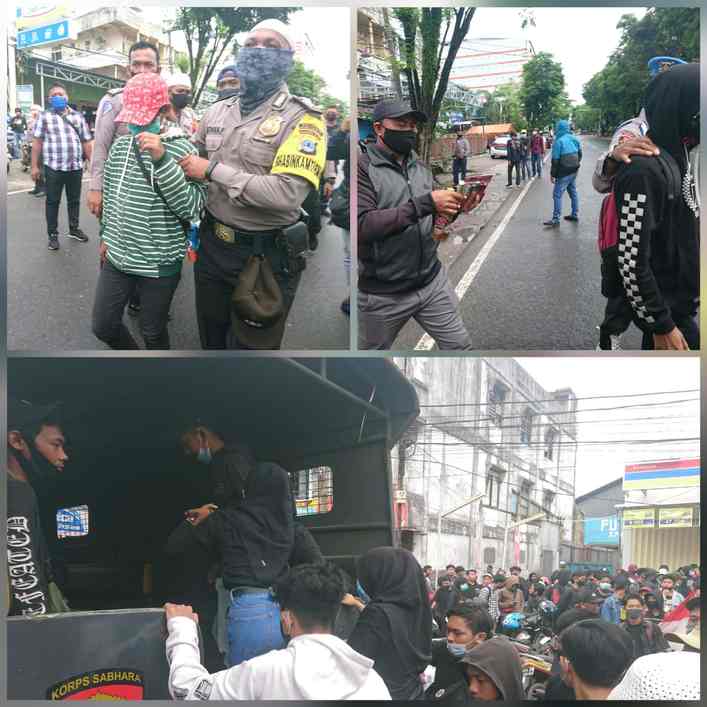 Setelah satu jam diamankan dan mau dibawa ke mapolresta , puluhan remaja bukan mahasiswa itu tidak mau diangkut masuk ke tiga truk dalmas. Sekitar pukul 15.00 Wita akhir merka mau diangkut dan tidak boleh ikut unras.