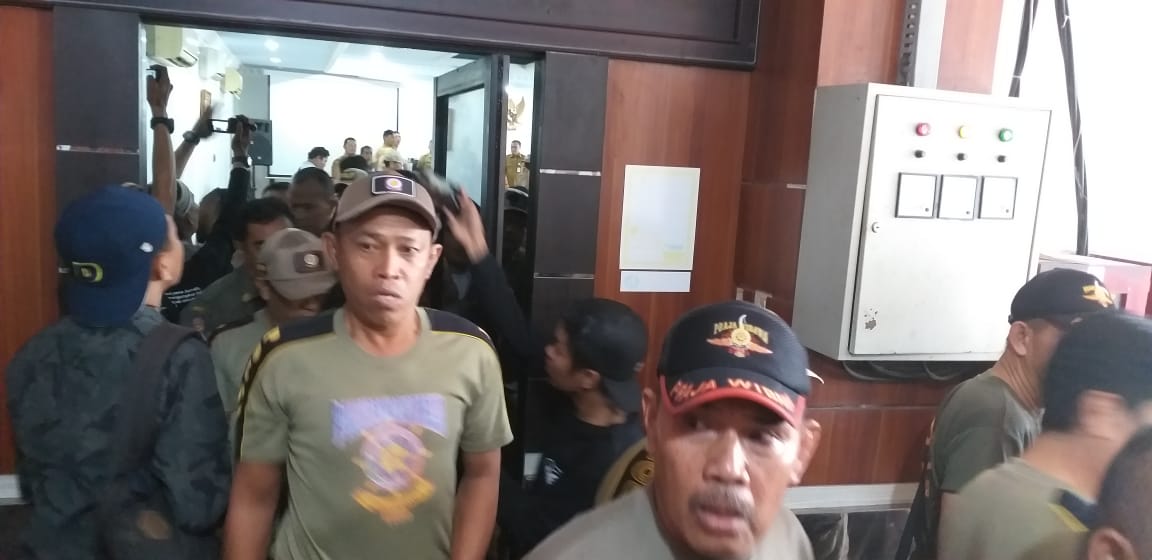Tidak lama aksi, Kepala BKD Kota Banjarmsin Safri Azmi akhirnya muncul dihadapan demonstran yang terlebih dulu menguasai kantor BKD.