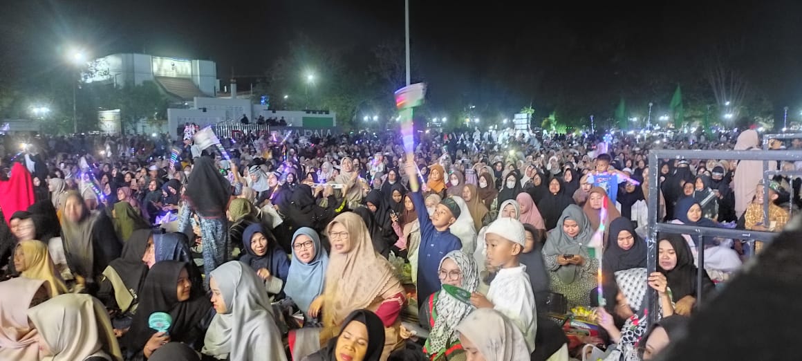 Barabai, BARITOPOST.CO.ID – Puluhan ribu masyarakat hadiri Murakata Bersholawat di Kabupaten Hulu Sungai Tengah (HST), yang dipimpin oleh Al-Habib Syech bin Abdul Qodir As-Segaf bertempat di Taman Dwi Warna Barabai, Ahad (2/6/2024) malam.