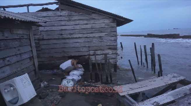 Mirnawati warga yang masih bertahan dirumah panggungnya itu mengutarakan, memang ada rasa was-was karena jika malam hari gelombang laut pasang, walau kondisi rumah masih aman-aman saja lantaran ketinggian tonggak rumah 1 meter.