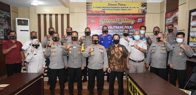 Tim Pusat Penelitian dan Pengembangan (Puslitbang) Mabes Polri Kunjungi Polres Tanah Laut, Polda Kalsel, Selasa (03/11/2020) siang.