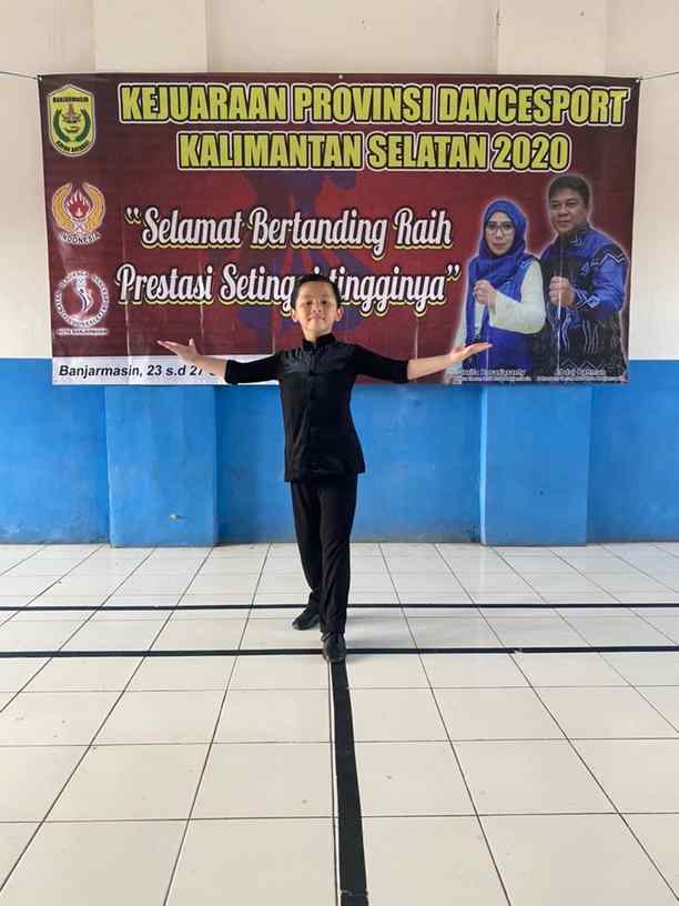 Atlet dancesport masa depan Banua dari RDP Club, Radhika Dhafi Pratama, meraih dua medali emas dari Solo Line Dancesport CCC U-10 dan Solo Line Dancesport Jive U-12.