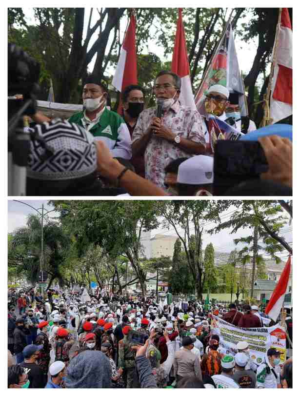 “DPR RI dan Presiden agar mencabut RUU HIP ini. Jika tidak digubris, massa dengan jumlah yang lebih banyak akan kembali turun,” teriak Ketua ARBAL Kalsel Tabagus saat orasi.