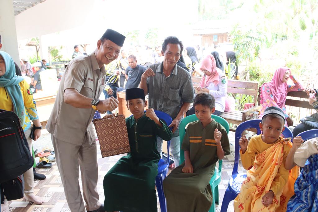Untuk diketahui usai disunat setiap anak diberikan bingkisan berupa perlengkapan sekolah dan sholat.