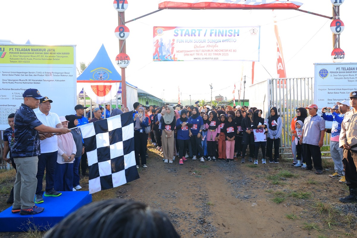 Tabunganen, BARITOPOST.CO.ID – Semangat kemerdekaan dan jiwa sportivitas mewarnai kegiatan Finisher Fun Run Susur Sungai Barito yang diikuti oleh ratusan pelajar serta pemuda dari berbagai wilayah di Barito Kuala. Kegiatan ini digelar oleh Pangkalan TNI Angkatan Laut (LANAL) Banjarmasin dalam rangka memperingati HUT ke-80 Republik Indonesia dan HUT ke-80 TNI AL Tahun 2025. di Kecamatan Tabunganen, Kabupaten Barito Kuala, Minggu (3/8/2025)