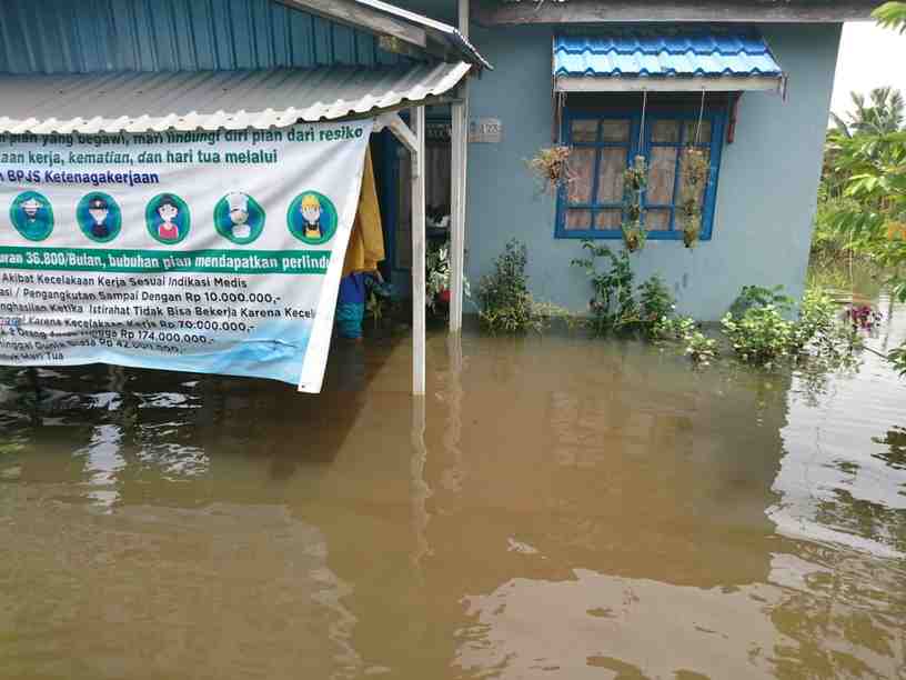 Lantaran di jalan dalam komplek masih tingginya setengah lutut orang dewasa. Sedangkan di dalam rumah masih ada air masuk beberapa jari.