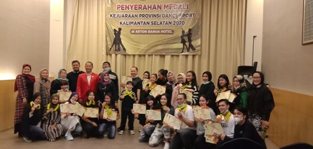 Banjarmasin, BARITO – Ikatan Olahraga Dancesport Indonesia (IODI) Kalsel baru bisa melaksanakan penyerahan medali kepada atlet yang mengikuti Kejuaraan Provinsi (Kejurprov) Dansa Virtual Kalsel akhir Oktober 2020. Terlaksananya pengalungan medali tersebut disupport Radikha Dhafi Pratama (RDP) Club Banjarmasi, Sabtu (21/11) malam di Aston Banua Hotel, Kabupaten Banjar.