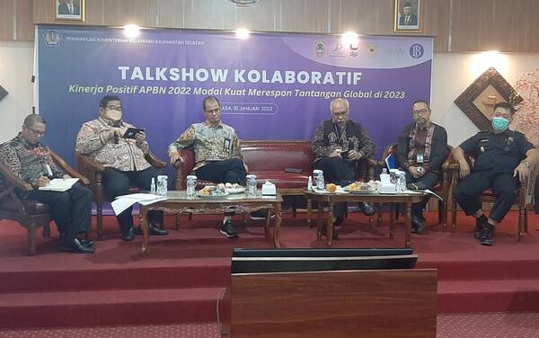 “Kita bersyukur capaian telah menggembirakan namun tetap waspada terhadap ancaman global tahun 2023,” katanya disela Talkshow Kolaboratif, dengan tema Kinerja Positif APBN 2022, Modal Kuat Merespon Tantangan Global 2023 di Aula DJp Kalsel, Selasa (10/1/2023).