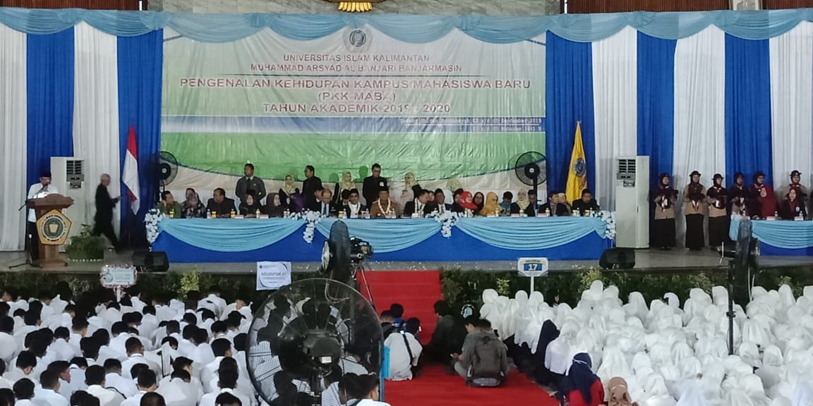 Banjarmasin, BARITO – Rektor Universitas Islam Kalimantan (Uniska)  Muhammad Arsyad Al-Banjari Banjarmasin Abdul Malik SPt, MSi Ph.D mengukuhkan 5.546 dari 6.891 mahasiswa yang diterima 2019/2020 pada pengenalan kehidupan kampus mahasiswa baru (PKK-MABA) Uniska TA 2019-2020.