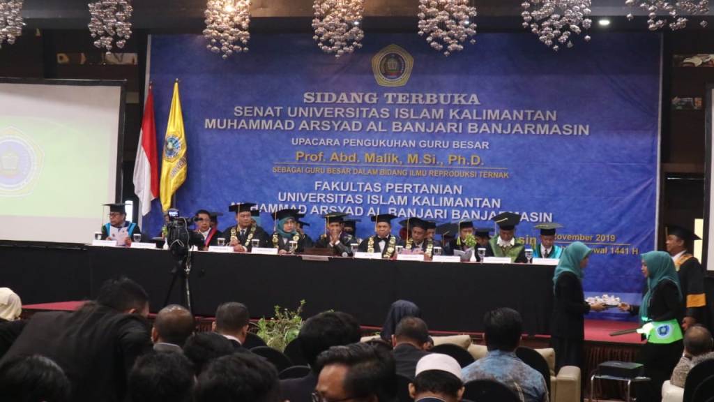 Upacara pengukuhan Prof Abdul Malik M.Si Ph.D sebagai Guru Besar dilakukan secara simbolis dalam kegiatan Sidang Terbuka Senat UNISKA Muhammad Arsyad Al Banjari Banjarmasin, di Novotel Banjarbaru, Sabtu (2/11).