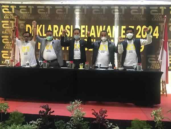 Relawan Barisan ET 2024 Kalsel dan Kalteng mendukung E.T untuk menggalang dukungan massa di seluruh daerah di Provinsi Kalsel dan Kalteng sehingga pada Pemilu Presiden 2024 memiliki basis dukungan massa yang banyak, menyebar luas dan jelas.