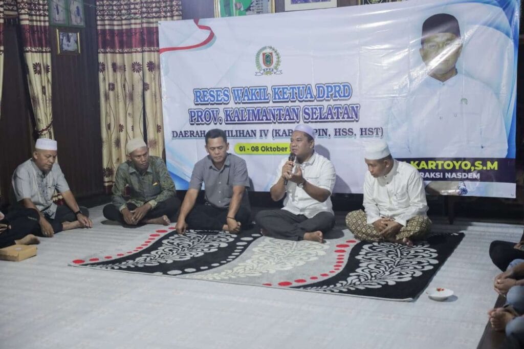 Kandangan, BARITOPOST.CO.ID Wakil Ketua DPRD Provinsi Kalimantan Selatan H Kartoyo, SM ketika menutup kegiatan resesnya untuk penyerapan aspirasi masyarakat di daerah pemilihan (Dapil), yakni saat berada di Desa Sungai Paring, Kabupaten Hulu Sungai Selatan, politisi Nasdem ini menerima keluhan beragam dari warga setempat, antara lain permintaan perbaikan infrastruktur jalan, penerangan serta penanganan dampak banjir akibat sistem irigasi.