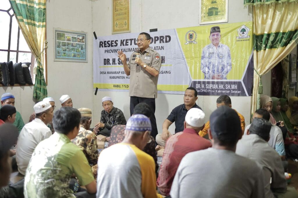 Amuntai, BARITOPOST.CO.ID – Ketua DPRD Provinsi Kalimantan Selatan Dr (HC) H Supian HK, SH, MH melaksanakan kegiatan reses untuk penyerapan aspirasi masyarakat di daerah pemilihan (Dapil).