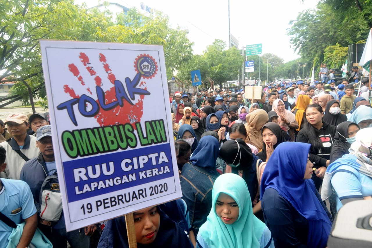 Mereka menolak secara keseluruhan isi draf RUU Omnibus Law Cipta Kerja yang sudah diserahkan pemerintah ke DPR RI, “RUU ini jika sampai menjadi undang-undang maka sangat merugikan pekerja dan buruh, jadi harus ditolak,” teriak Biro Hukum Konfederasi Serikat Pekerja Seluruh Indonesia (KSPSI) Kalimantan Selatan Sumarlan