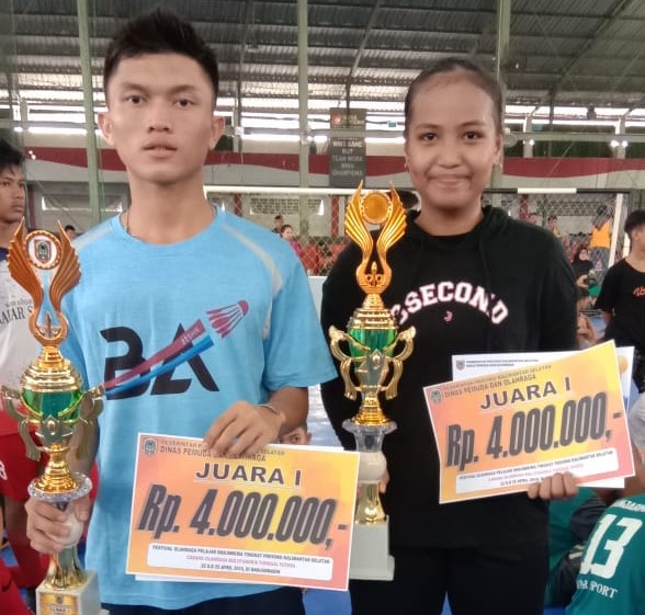 Pemain muda, M Rivan (MAN 1 Banjar) dan Yuza Nur Annisa (SMAN 1 Gambut) keluar sebagai juara pertama cabang bulutangkis Festival Olahraga Pelajar se Kalsel 2019, Kamis (25/4) di Borneo Indoor Futsal di HKSN Komplek AMD Permai Banjarmasin.