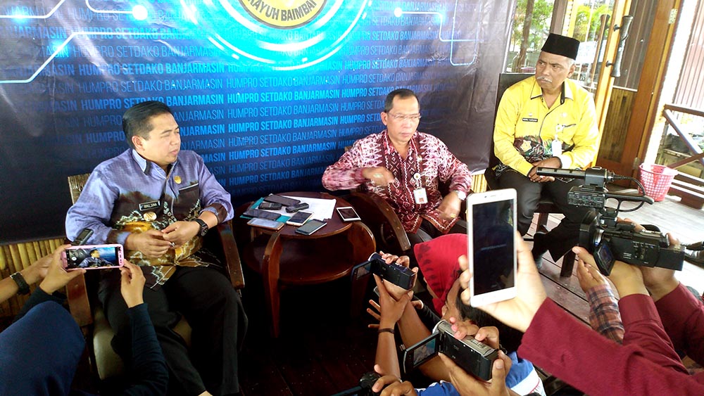 Walikota Banjarmasin Ibnu Sina dan Wakil Walikota Banjarmasin, Hermasnyah, serta Sekdako Banjarmasin, Hamli Kursani saat press realise penyerapan 2018 di salah satu Rumah Makan di Banjarmasin, Kamis (3/1). hamdani