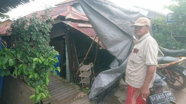 Jumbri mengetahu rumahnya akan bruk yang sehari hari bekerja sebagai tukang bangunan setelah dibangunkan tetangganya bernama Murni (48).