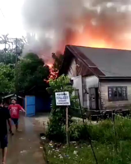 API BERKOBAR-Warga digegerkan kejadian api yang berkobar di Gang AL Mizan Kuin Utara Banjarmasin Utara, di saat hujan turun, Selasa (5/2/2019) sore sekitar pukul 15.50 Wita. (foto:ist)