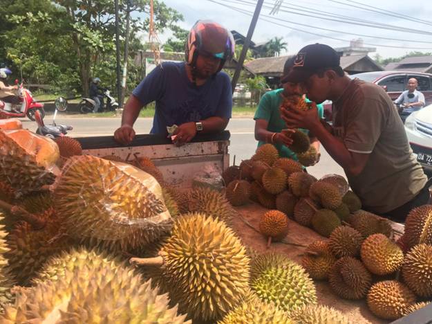 Bila tadi sampah durian dua karung setiap pedagang, itu belum lagi sampah dari masyarakat yang membawa pulang durian beliannya.