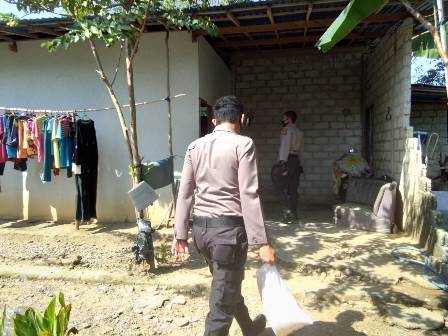 Personil Patroli Sabhara Polres yang Dipimpin Aipda Yudi “Sembari Memberi Bantuan Sosial Kami Juga Mengedukasi Masyarakat Tentang Protokol Kesehatan dan Bahaya Covid 19” ucap Aipda Yudi