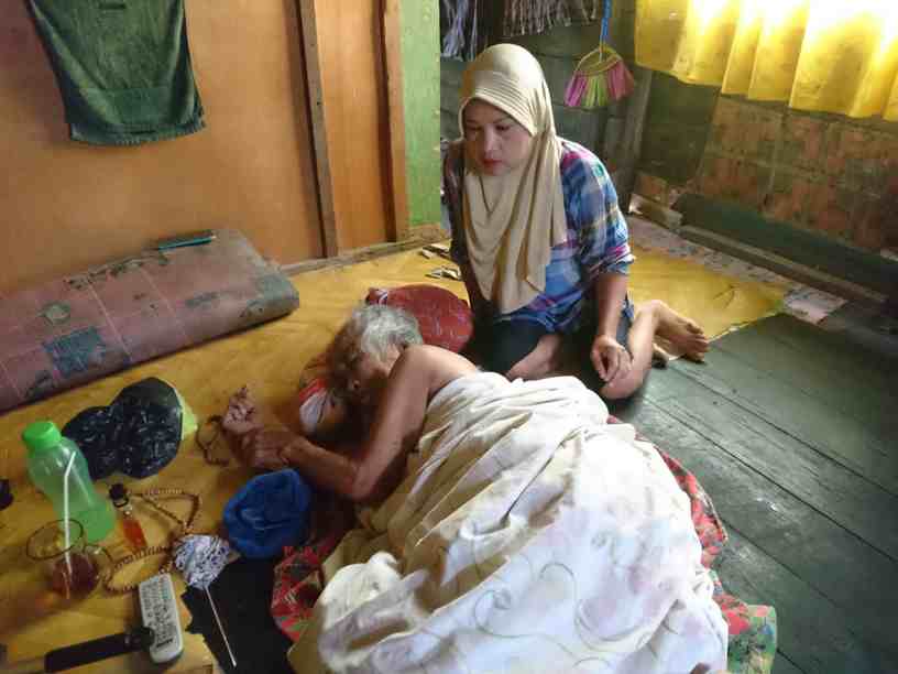 Selama tiga tahun ini nenek tersebut dirawat oleh Syamsiah (45) warga Sungai Gardu setempat. Menurutnya dia hanya bisa merawat atau menjenguk bila mau bekerja atau pulang .