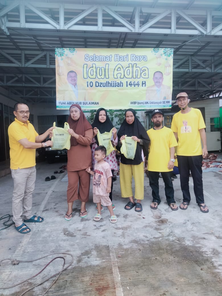 Dikatakan pada 10 Dzulhijjah 1444 H/2023 ini, DPD Partai Golkar membagikan kurang lebih 20 ekor sapi yang disebar di lima kecamatan Banjarmasin. Setiap kecamatan diberikan 3 ekor sapi yang disalurkan melalui caleg di dapil masing-masing.