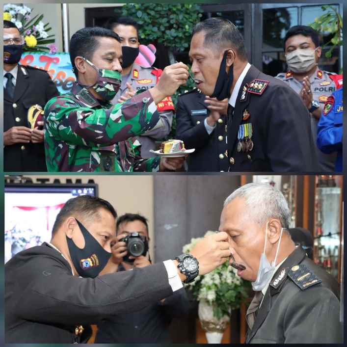 Mewakili Kapolresta Banjarmasin Kombes Pol Rachmat Hendrawan, Waka Polresta AKBP Sabana Atmojo kemudian memberikan nasi tumpeng kepada yang lebih tua atau mau pensiun. Termasuk juga piagam penghargaan atas pengabdian mereka.