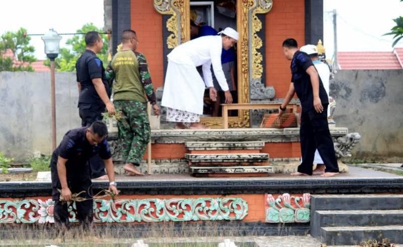 Dipimpin Kasubbagrenmin Kompol I Wayan Eka Wijaya, selain melaksanakan donor darah Personil Satuan Brimob Polda Kalsel juga melaksanakan kegiatan bakti sosial membersilkan Tempat Ibadah Pura Jagatnatha Suryanatha yang ada di Banjarbaru.