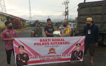 Kapolsek kelumpang hulu yang mewakili Kapolres Kotabaru AKBP Andi Adnan Syafruddin,SH.,S.Ik.,MM mengatakan “kegiatan bakti sosial dari jajaran Polri ini sudah rutin dilakukan dalam rangka hari Bhayangkara ke-74, paket sembako di berikan kepada warga yang kurang mampu yang Terdampak Covid-19”.