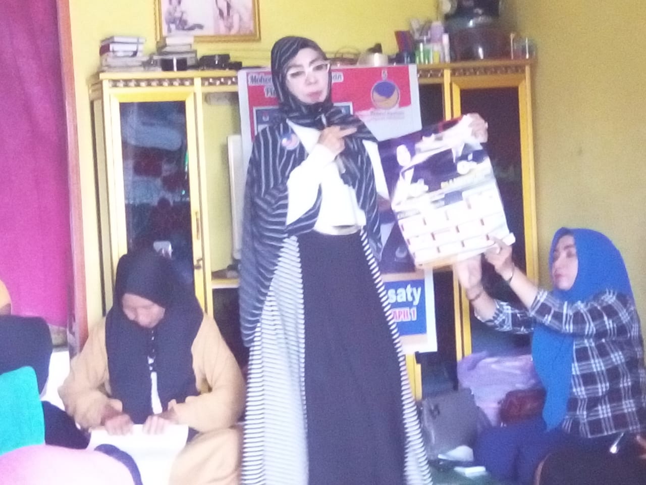Dalam kesempatan itu, Hj Helda Larasaty juga memberikan petunjuk dan arahan cara mencoblos caleg Partai NasDem yang benar, sekaligus memperagakan nama dirinya Hj Helda Larasaty untuk dicoblos para kaum ibu, menggunakan kertas suara yang tersedia. (afdi)