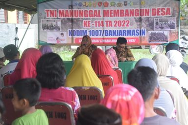 Banjarmasin, BARITO – Selain gencar melaksanakan pekerjaan fisik, personil Satuan Tugas (Satgas) TNI Manunggal Membangun Desa (TMMD) ke-114 Komando Distrik Militer (Kodim) 1007/Banjarmasin juga melaksanakan kegiatan non fisik. Salah satunya, berkolaborasi dengan Dinas Ketahanan Pangan, Pertanian dan Perikanan (DKP3) Kota Banjarmasin dengan melaksanakan penyuluhan kepada masyarakat di Kampung Sungai Gampa, Kelurahan Sungai Jingah, Kecamatan Banjarmasin Utara, Kota Banjarmasin, Senin (1/8/2022).