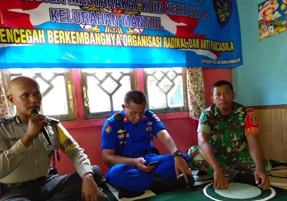 Bhabinkamtibmas (BKTM) Mantuil dan Binmas Polsek Banjarmasin Selatan (Bansel) menghadiri acara Anti Radikal dan Organisasi Terlarang serta Anti Pancasila yang digelar pihak Sat Polair setempat, Kamis (1/8/2019) pagi. Bertempat di rumah Ahmad Fauzi Jalan Kampung Kuin Kecil RT 14 RW 01 Kelurahan Mantuil Kecamatan Bansel.