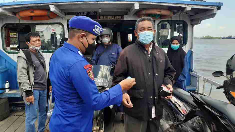 Banjarmasin, BARITO – Pelaksanaan Pemberlakukan Pembatasan Kegiatan Masyarakat (PPKM) Level IV dilaksanakan oleh pihak Satuan (Sat) Polair Air Polresta Banjarmasin, Selasa (27/7/2021) pagi. Dengan melakukan penjagaan ketat di Dermaga Fery Penyeberangan Banjar Raya Kota Banjarmasin tujuan Sakakajang Tamban.