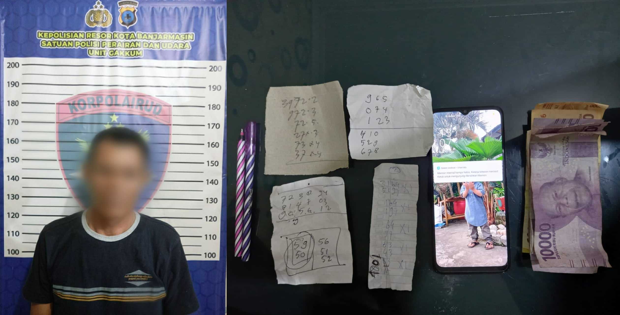 Bermula saat anggota melakukan penyelidikan dari Unit Gakkum Sat Polairud Polresta Banjarmasin dipimpin Kanit Gakkum Iptu Alamsyah Sugiarto. Setelah mendapatkan informasi bahwa di Tempat Kejadian Perkara (TKP) sering adanya permainan judi togel.