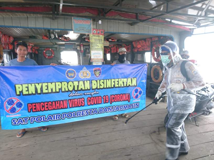 Kasat Polair Polresta Banjarmasin Kompol John Lois Letedara mengatakan, pihaknya melakukan pencegahan terhadap virus menular Coronvirus Disease (Covid-19) untuk agar penumpang terhindari dari wabah yang pandemic tersebut. “Kita memberi bantuan kepada masyarakat dengan sasaran angkutan umum Penyeberangan,”sebutnya.