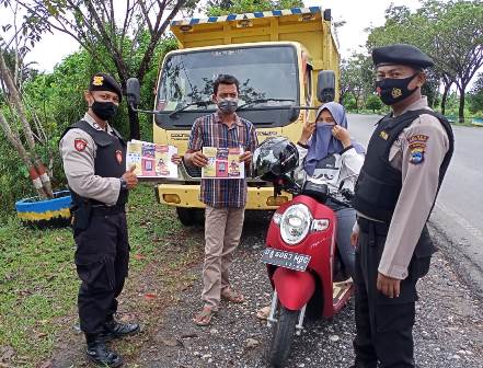 Sat Sabhara Polres Batola lakukan patroli dialogis berikan himbauan untuk menekan COVID-19 dengan cara melakukan peraturan Bupati nomor 54 Tahun 2020, tentang Pedoman Pelaksanaan Pembatasan Kegiatan Masyarakat Dalam Rangka Percepatan Penanganan Covid-19, Senin (10/8/2020).
