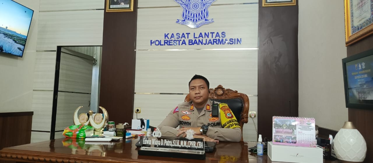 KASAT LANTAS - AKP Edwin Widya Dirotsaha selaku Kasat Lantas Polresta Banjarmasin saat menjelaskan terkait penggunaan standar TNKB, Rabu (10/7/2024). (foto;ist)