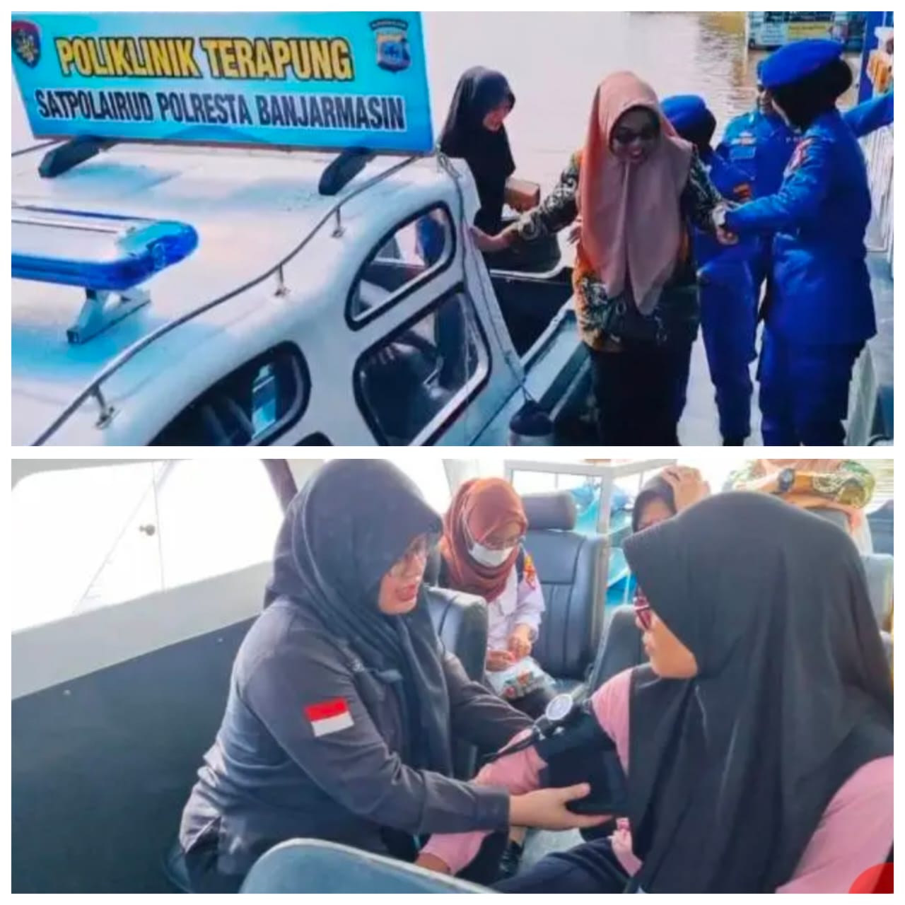 Banjarmasin, BARITOPOST.CO.ID – Satuan Polisi Perairan dan Udara (Satpolairud) Polresta Banjarmasin sambangi warga pesisir melalui Poliklinik Terapung guna melayani kesehatan masyarakat bantaran sungai, Selasa (6/8/2024). Poliklinik Terapung itu menggunakan Sarana Apung KP- XIII-1007-28, melakukan penyisiran ke Sungai Martapura Kampung Sungai Jingah Banjarmasin Utara.
