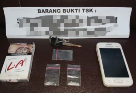 ang dibungkus dengan plastik klip warna bening dengan berat bruto 0,51 (nol koma lima satu) gram, 1 (satu) lembar plastik klip warna bening, 1 (satu) buah kotak rokok merk LA warna putih, 1 (satu) buah handphone merk Samsung warna putih dan 1 (satu) unit sepeda motor merk Honda Beat warna orange hitam No. Pol. DA 6305 VX. Selanjutnya Pelaku dan Barang Bukti diamankan di Polres HST untuk proses lebih lanjut.