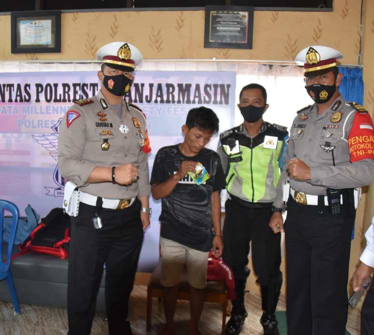 Kasat Lantas Polresta Banjarmasin AKP Gustaf Adolf Mamuaya mengapreasisi bawahannya melakukan aksi etrsebut hingga pelaku dapat diringkus karena berkat kecurigaan pihak anggota Lantas. Selanjutnya dilakukan penangkapan dan pelaku besrta barang bukti dibawa dan diserahkan ke Sat Resnarkoba Polresta Banjarmasin untuk diproses lebih lanjut.