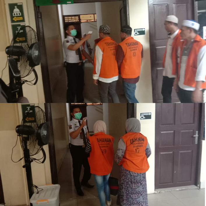 Banjarmasin, BARITO – Berbagai upaya dilakukan Pengadilan Negeri (PN) Banjarmasin guna mencegah penyebaran Corona Virus Disease 2019 (Covid-19) yang tetap menggelar sidang seperti biasanya, khususnya bagi. perkara-perkara pidana. Salah satunya para terdakwa sebelum masuk ke ruang tahanan menunggu giliran sidang dilakukan cek suhu tubuh,”.
